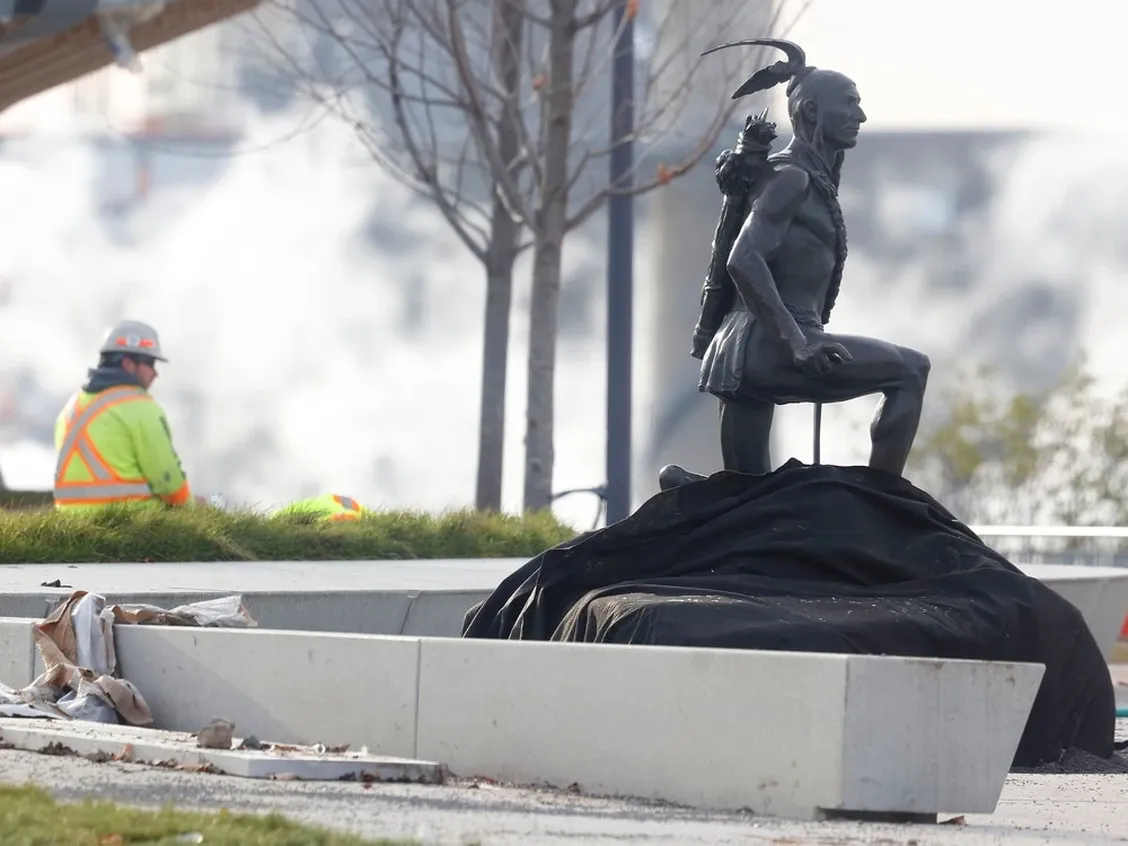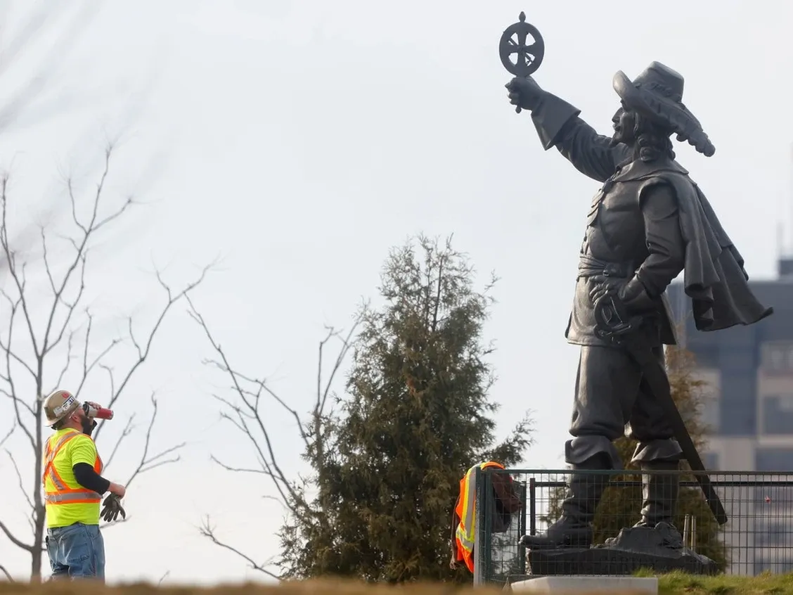 Champlain’s statue was moved to reflect his historical uncertainty, though it remains close to the Kichi Zibi Innini statue.