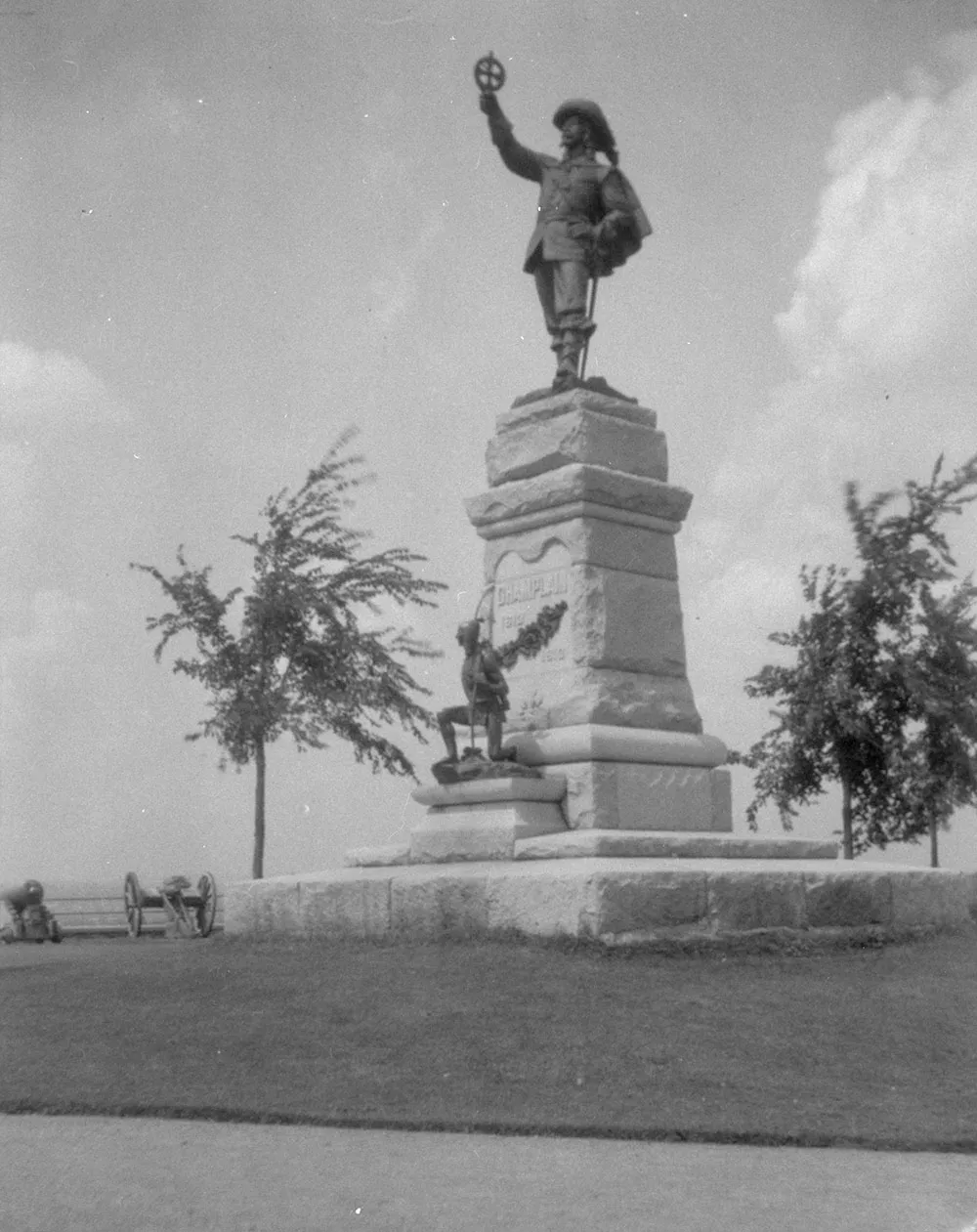The Kichi Zibi Innini statue was added to the base of the Champlain monument in 1924.